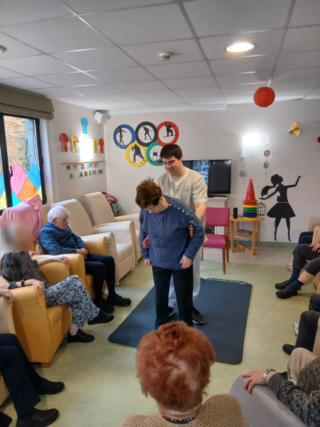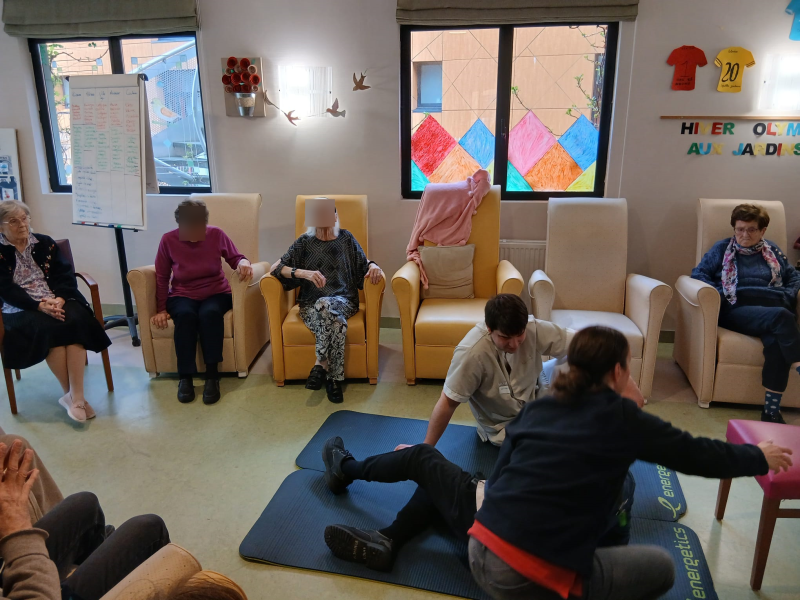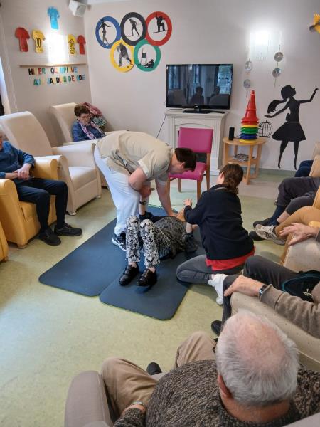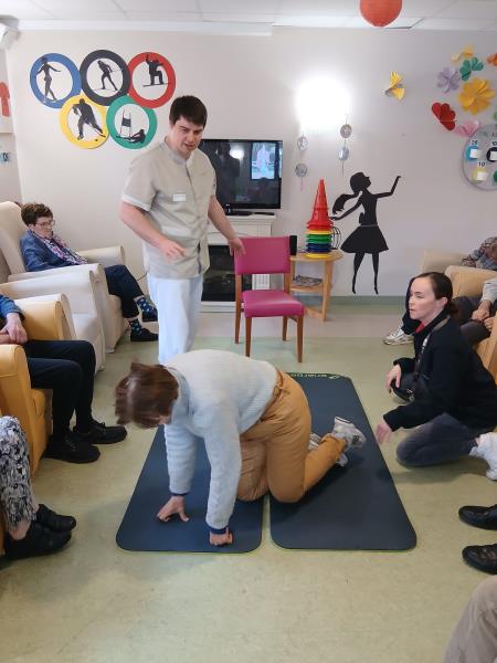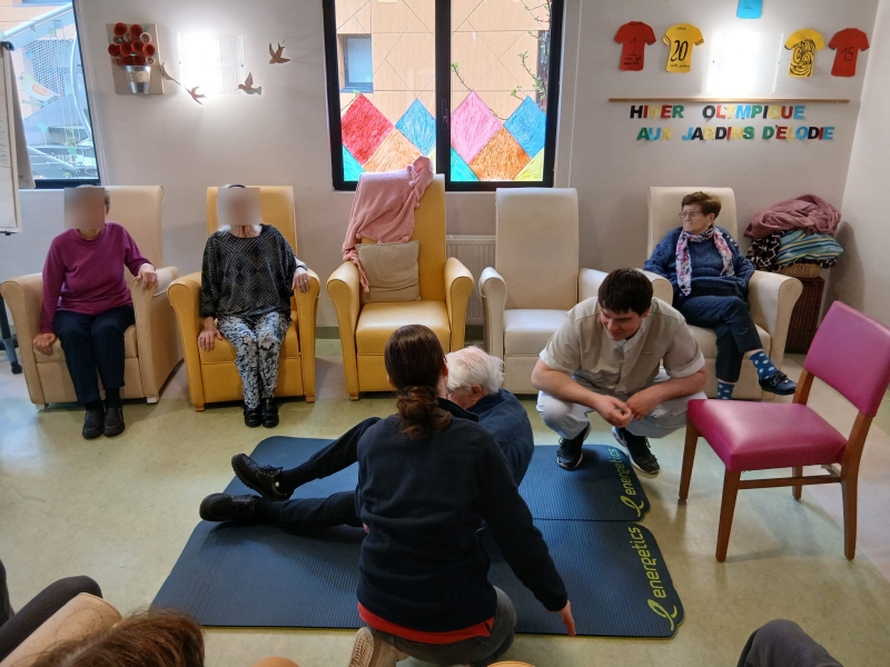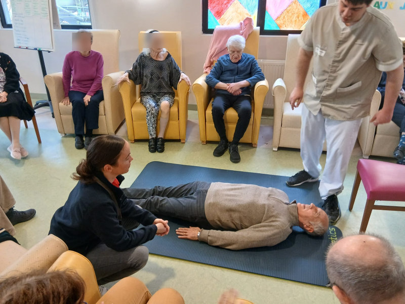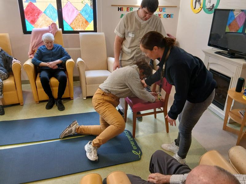 Parce qu'il est important de savoir se relever en cas de chute, et surtout pour nos ainés, des ateliers sont régulièrement organisés à l'EHPAD des Jardins d’Élodie par notre éducateur APA, Germain et une animatrice.