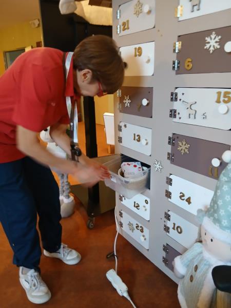 Aujourd'hui, jeudi 4 décembre, 16 résidents ont été tirés au sort pour une séance de relaxation Snoezelen. Des surprises pour ce calendrier de l'avent qui réjouit tout le monde.