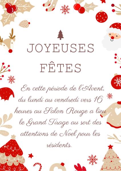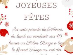 Notre chalet fait son retour cette année. En cette période de l'avent, du lundi au vendredi vers 16h au salon rouge, a lieu le grand tirage au sort des petites attentions réservées aux résidents.