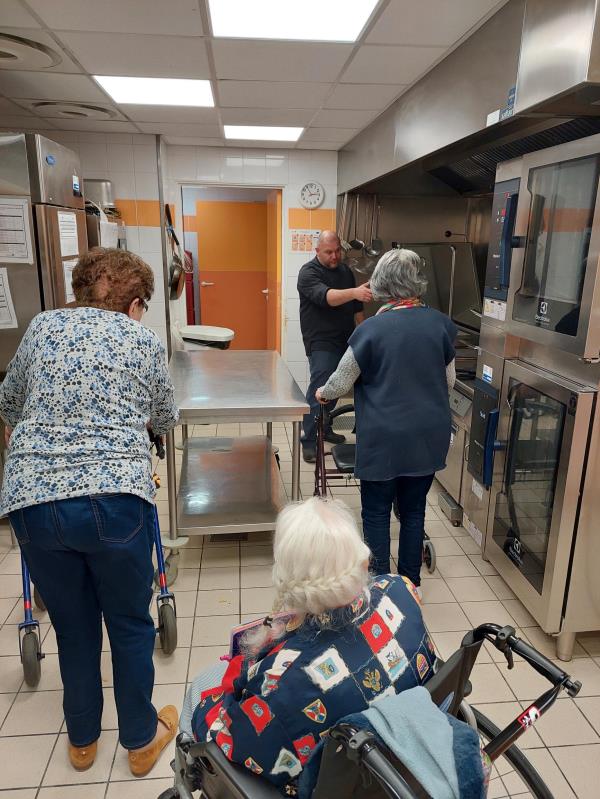 Les commissions des menus permettent aux résidents d’exprimer leurs goûts, de proposer des idées et de donner leur avis sur les repas servis. Ces échanges réguliers renforcent leur implication et assurent une cuisine qui leur ressemble. Dans la même dynamique, les visites des cuisines offrent aux résidents l’occasion de découvrir l’organisation, les exigences d’hygiène et le travail minutieux des équipes culinaires. Elles renforcent la confiance et valorisent le savoir‑faire de ceux qui cuisinent pour eux chaque jour.
