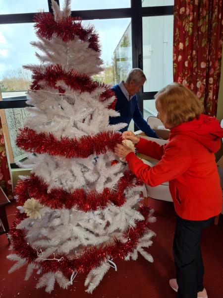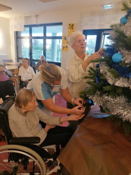 Les Jardins d'Elodie > Actualités > Décoration de la structure Décoration de la structure Publiée le 07/12/2021 Les Jardins d'Elodie se sont parées des couleurs de Noël grâce aux résidents et aux professionnelles.