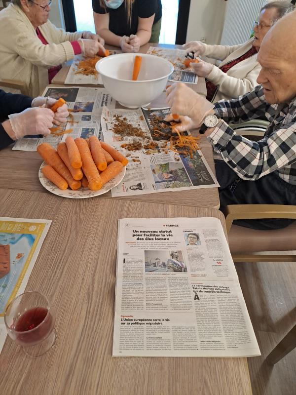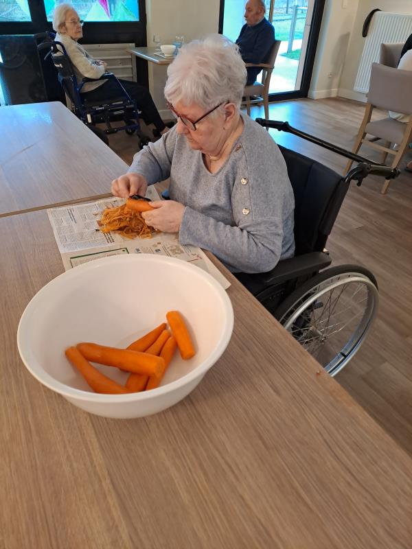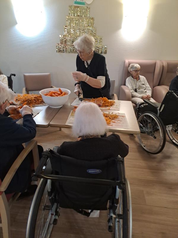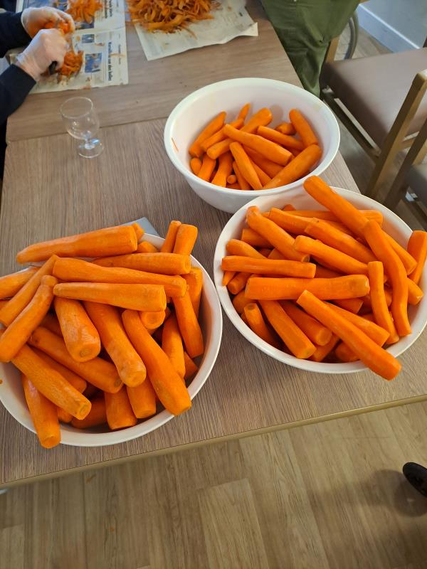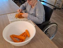 Ce matin, les résidents ont mis la main à la pâte pour éplucher des carottes. Ni une ni deux, on prend l'économe et on y va !!!🥕