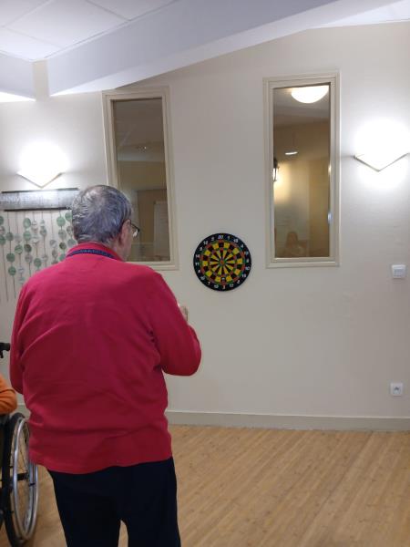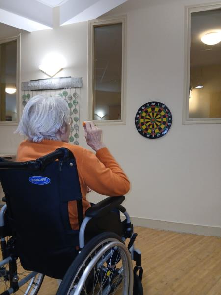 Les résidents testent un des nouveaux jeux lors d'un moment de gym douce.