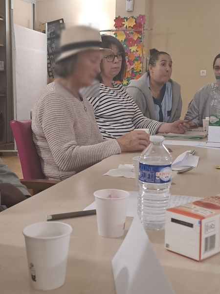 La salle de formation est au RDC de la structure et très souvent le groupe est rejoint de résidents qui se baladent et qui s'installent.