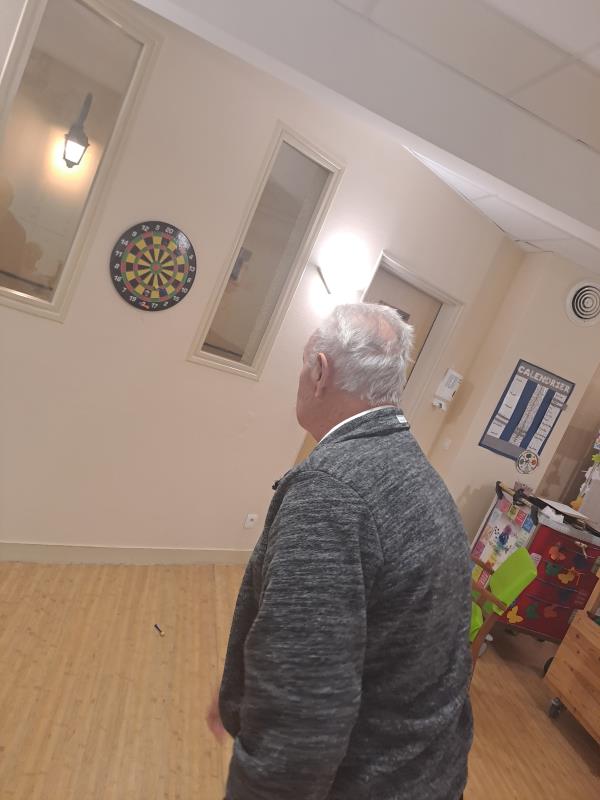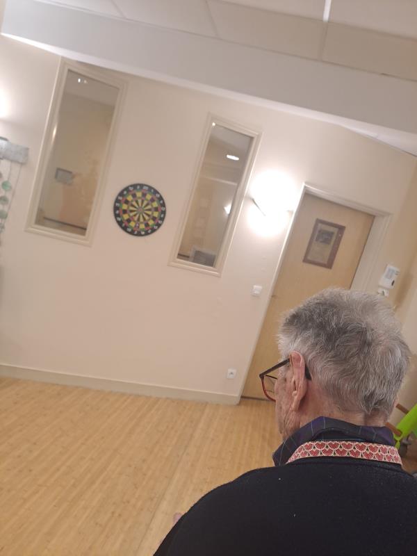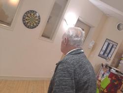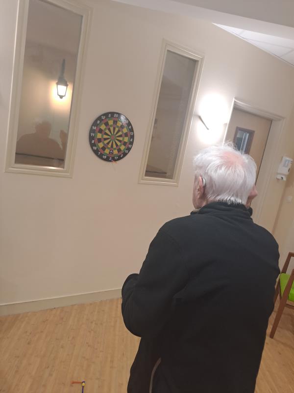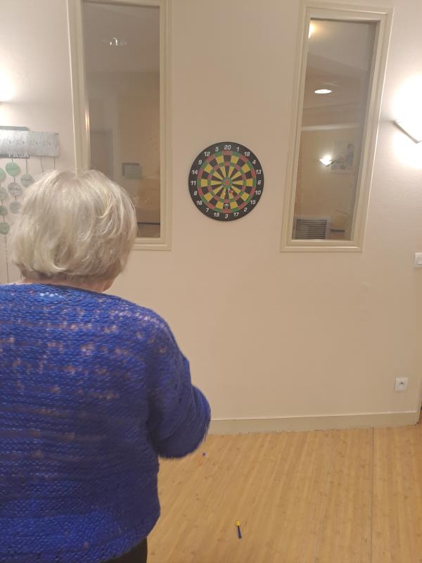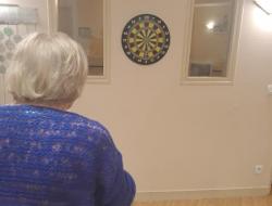 Lors de la séance de gym douce mardi, les résidents se sont exerçait au jeu de fléchettes. Un geste précis, un regard attentif, et surtout l’envie de réussir.