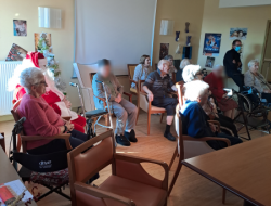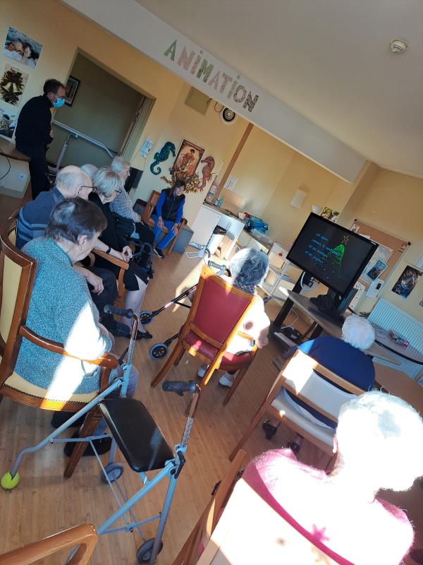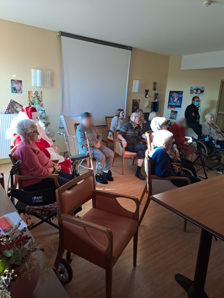 Mercredi 24 décembre, pour se mettre dans l'ambiance du réveillon, un petit karaoké de Noël a joyeusement pris place. Résidents du rez-de-chaussée et de l'étage ont partagé un moment en chanson. En prime, la visite du père noël a rendu le sourire à tout le monde. Il n'y a pas d'âge pour profiter du père noël