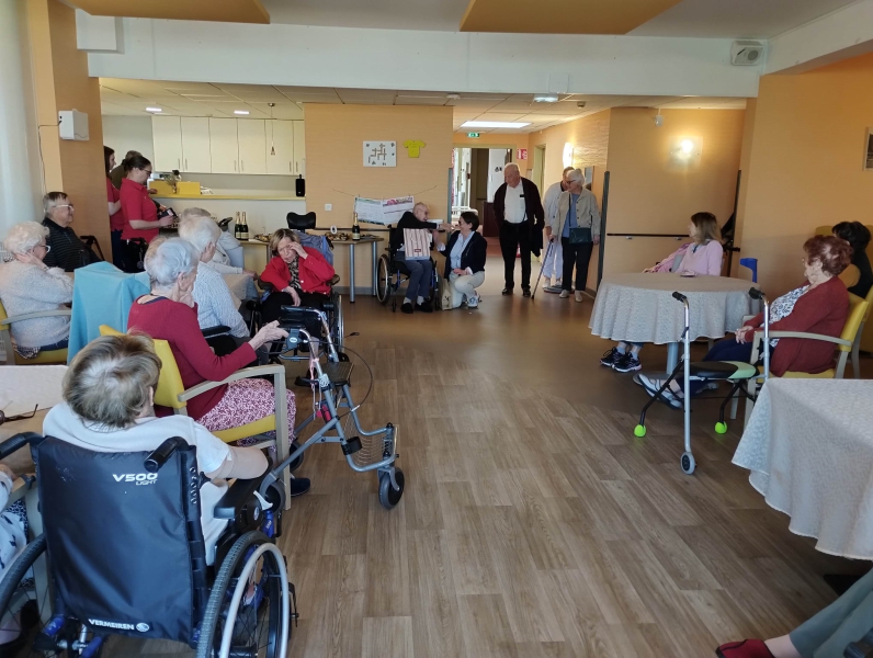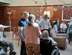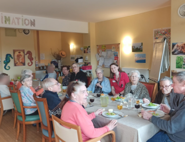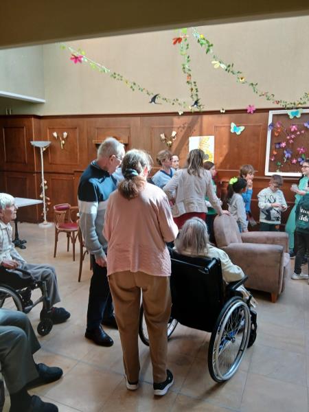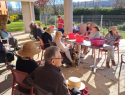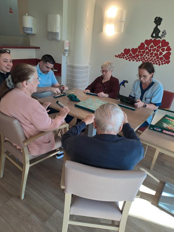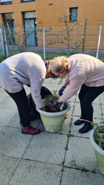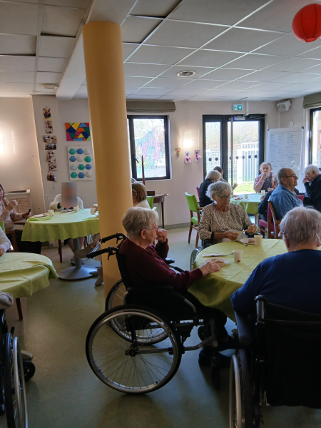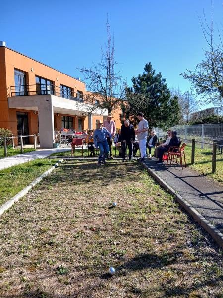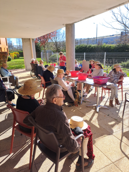 Repas partagé lundi, mardi la Saint-Patrick, suivie d'une rencontre intergénérationnelle avec une chasse au trésor. Le mercredi et le jeudi, nous avons profité de ce beau soleil entre pétanque et les activités quotidiennes dehors, sans oublier qu'avec le printemps qui arrive il faut commencer à nettoyer le jardin et les terrasses. Puis vendredi était un jour spécial pour l'un de nos résidents. Nous avons mis M. V… à l'honneur. Eh oui, 100 ans, ça se fête dignement avec gâteaux et champagne !!!
