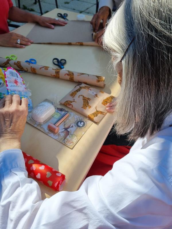 Profiter d'un rayon de soleil pour s'installer dans les jardins et poursuivre les préparatifs de notre fête du 28 juin.