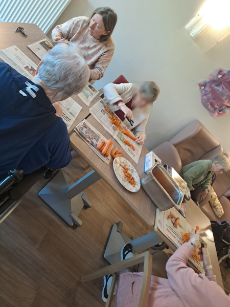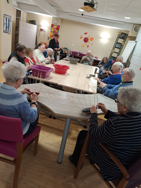 Côté activités manuelles, chacun a pu s’exprimer à travers la vannerie, le tricot et diverses créations, sans oublier des moments du quotidien comme l’épluchage de légumes, qui participent aussi au maintien de l’autonomie.