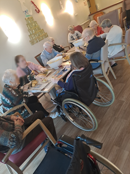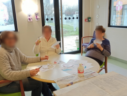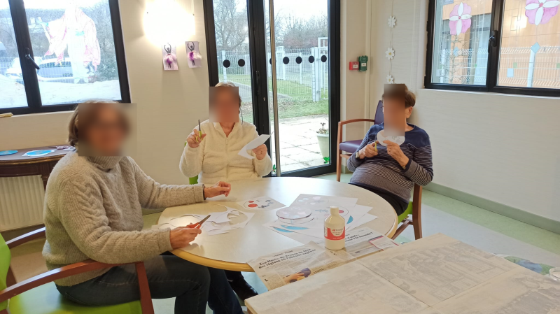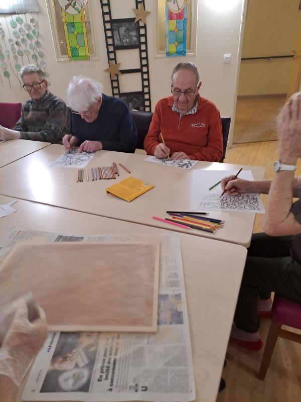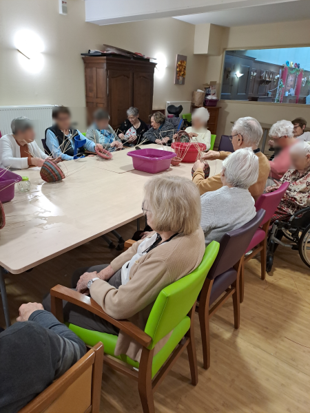 De nombreuses activités ont été proposées pour stimuler la motricité fine, comme les ateliers créatifs, la vannerie ou encore l’épluchage de légumes. À l’accueil de jour, les résidents ont également construit un éphéméride.