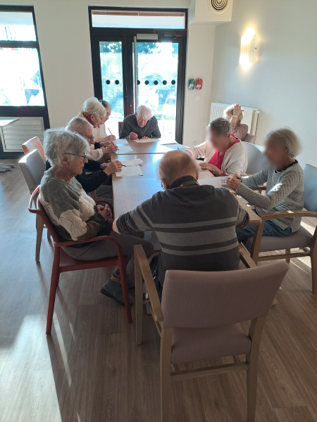 Bref, toute la semaine des activités créatives, des ateliers mémoires, des ateliers écrits, que ce soit mots mêlés ou l'atelier du mercredi matin, puis des activités plus divertissantes.