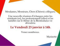 Une nouvelle réunion d’échanges entre les résidents (es), les professionnels (elles) et les familles sur le thème de la Bientraitance se déroulera