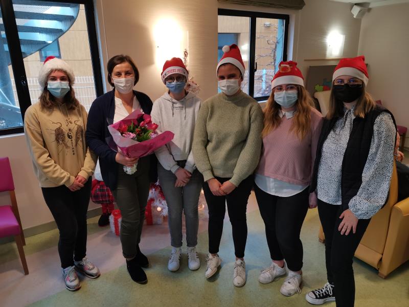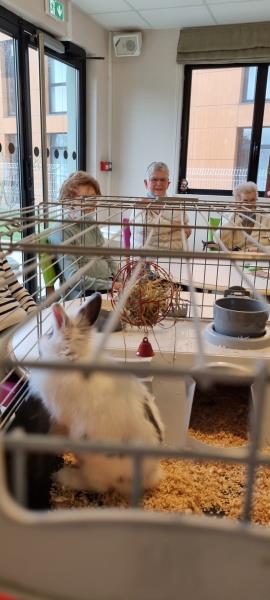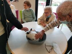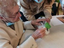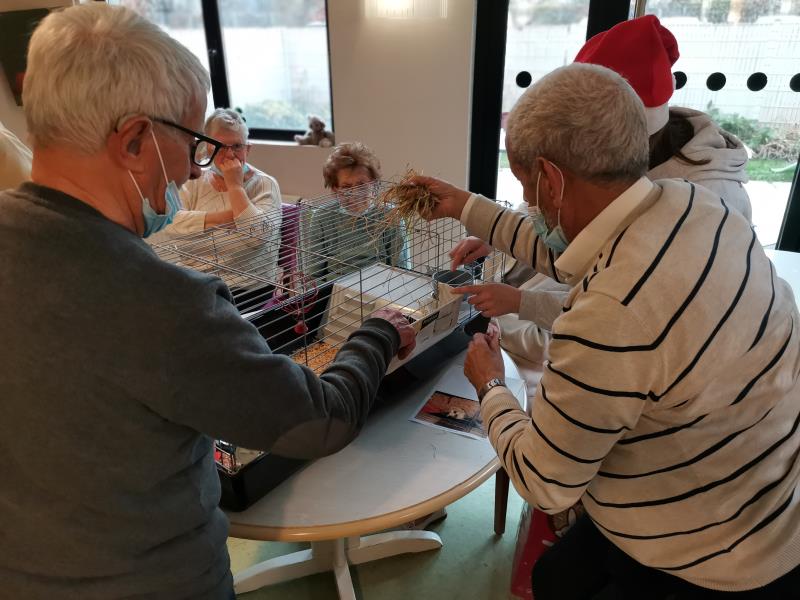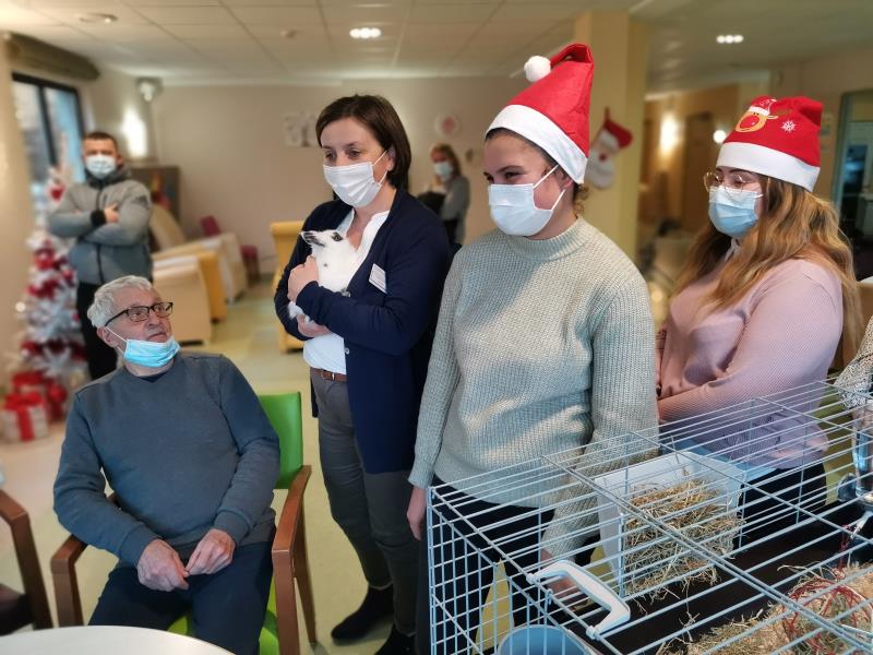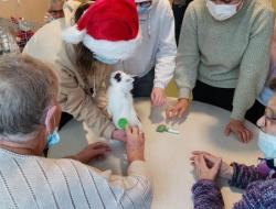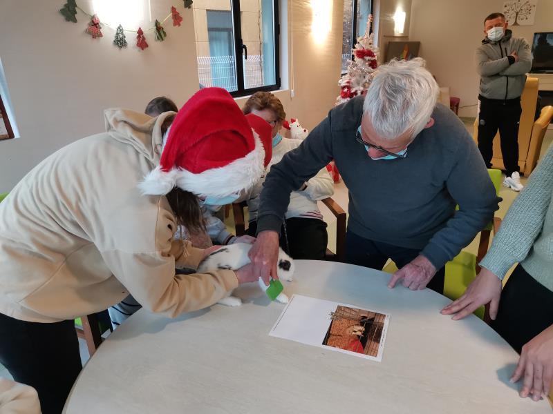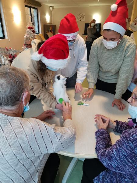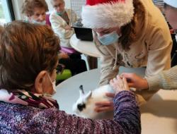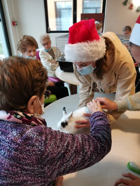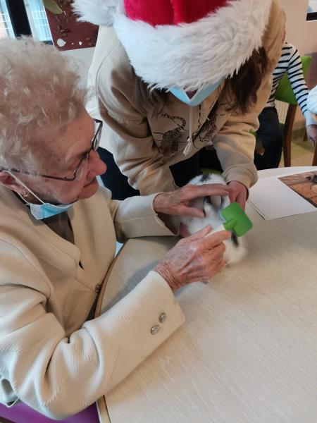 Petite Santa, offerte aux résidents par un groupe d'étudiantes du lycée Jeanne d'Arc : Médiation animale qui dès son arrivée a fonctionné : sourire, maîtrise des gestes, lien social.