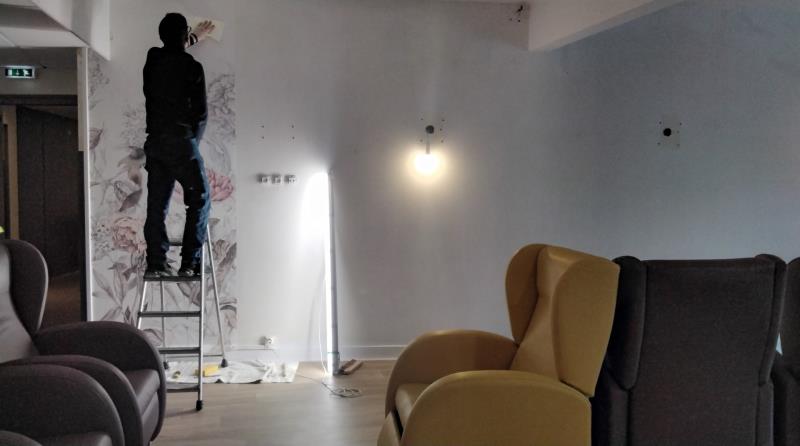 Quelques « petits » travaux ont été entrepris cette semaine : Christophe s’affaire à refaire la salle à manger du 1er Ouest, Charles rénove la salle de relaxation, quant à Germain, il remanie la salle de rééducation / réadaptation. Affaires à suivre ...😉