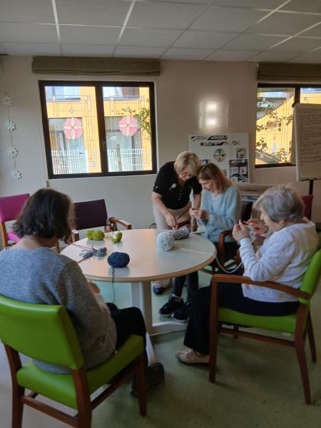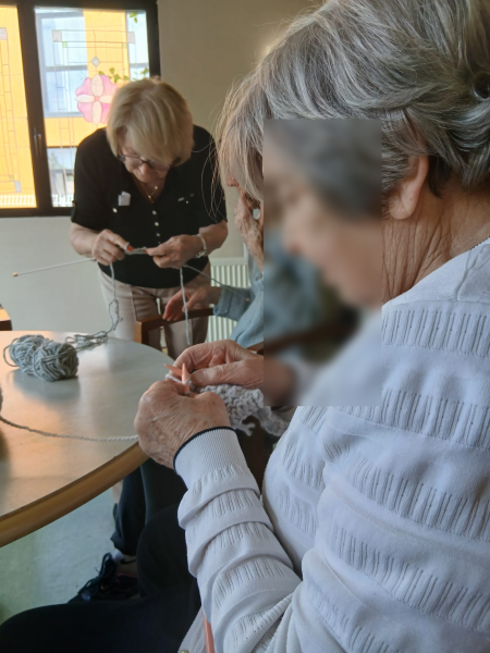 Enfin, pratiqué en groupe, le tricot encourage les échanges et renforce le lien social. Il valorise les résidents en mettant en avant leur savoir-faire, contribuant ainsi à leur bien-être global.